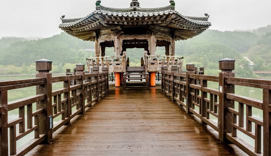 안동이 민속촌 같은 느낌만 준다고 생각하면 오산입니다. 안동의 밤을 책임지는 월영교는 국내에서 가장 긴 나무다리로, 먼저 세상을 떠난 남편을 위해 머리카락을 뽑아 미투리를 만든 아내의 숭고한 사랑 이야기를 담고 있습니다. 밤이 되면 다리에 조명이 켜지고 안동호 위로 달빛이 비치는 모습은 환상적인 야경을 연출합니다. 다리 중간의 '월영정'에 앉아 호숫바람을 맞으면 안동의 또 다른 낭만을 느낄 수 있습니다.